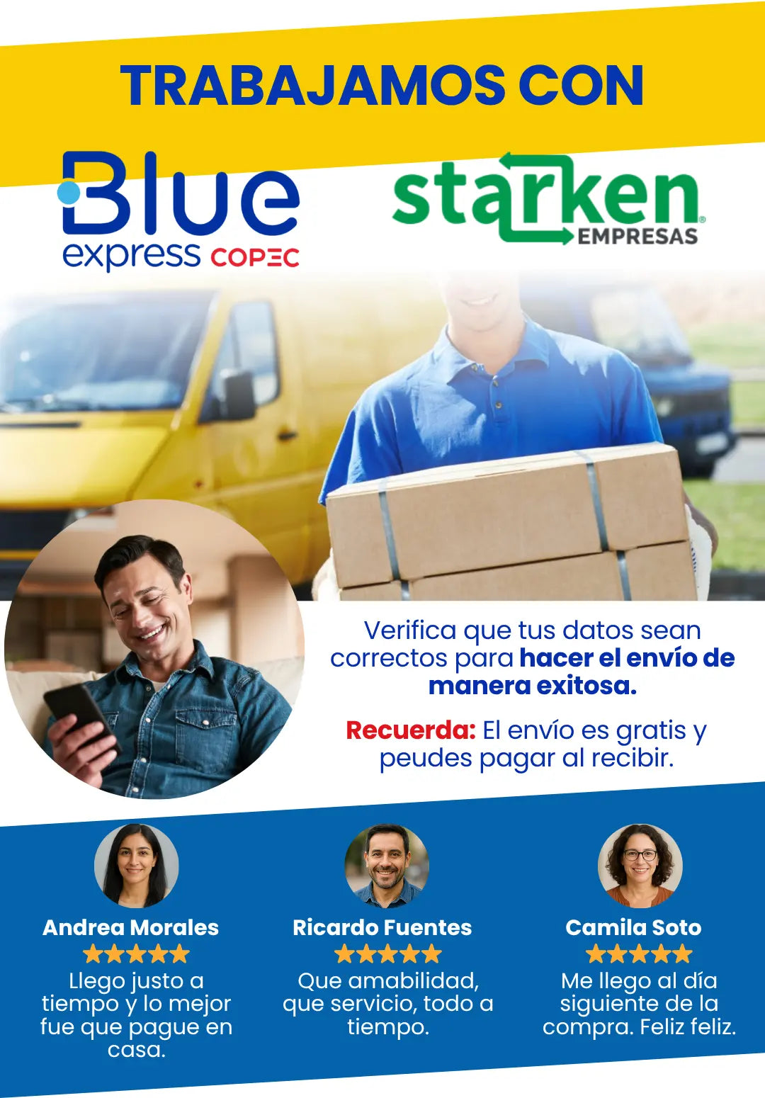 24–36 hrs en la Región Metropolitana. Al confirmar vía WhatsApp se le indicará día y horario de despacho.
