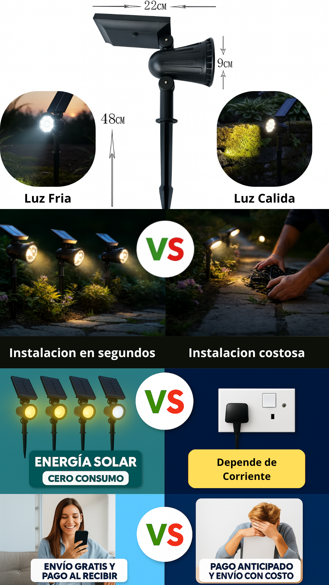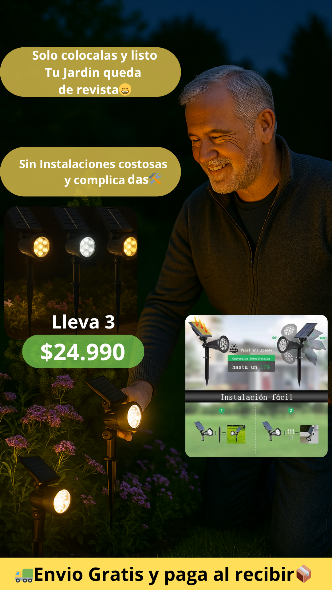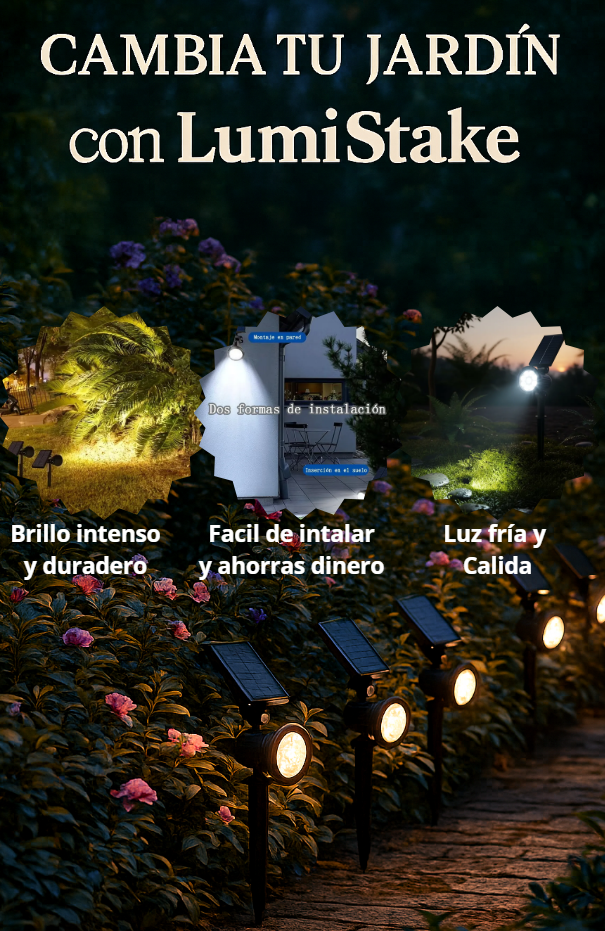 LumiStake transforma tu jardín con luz solar. Pack de 3 unidades.