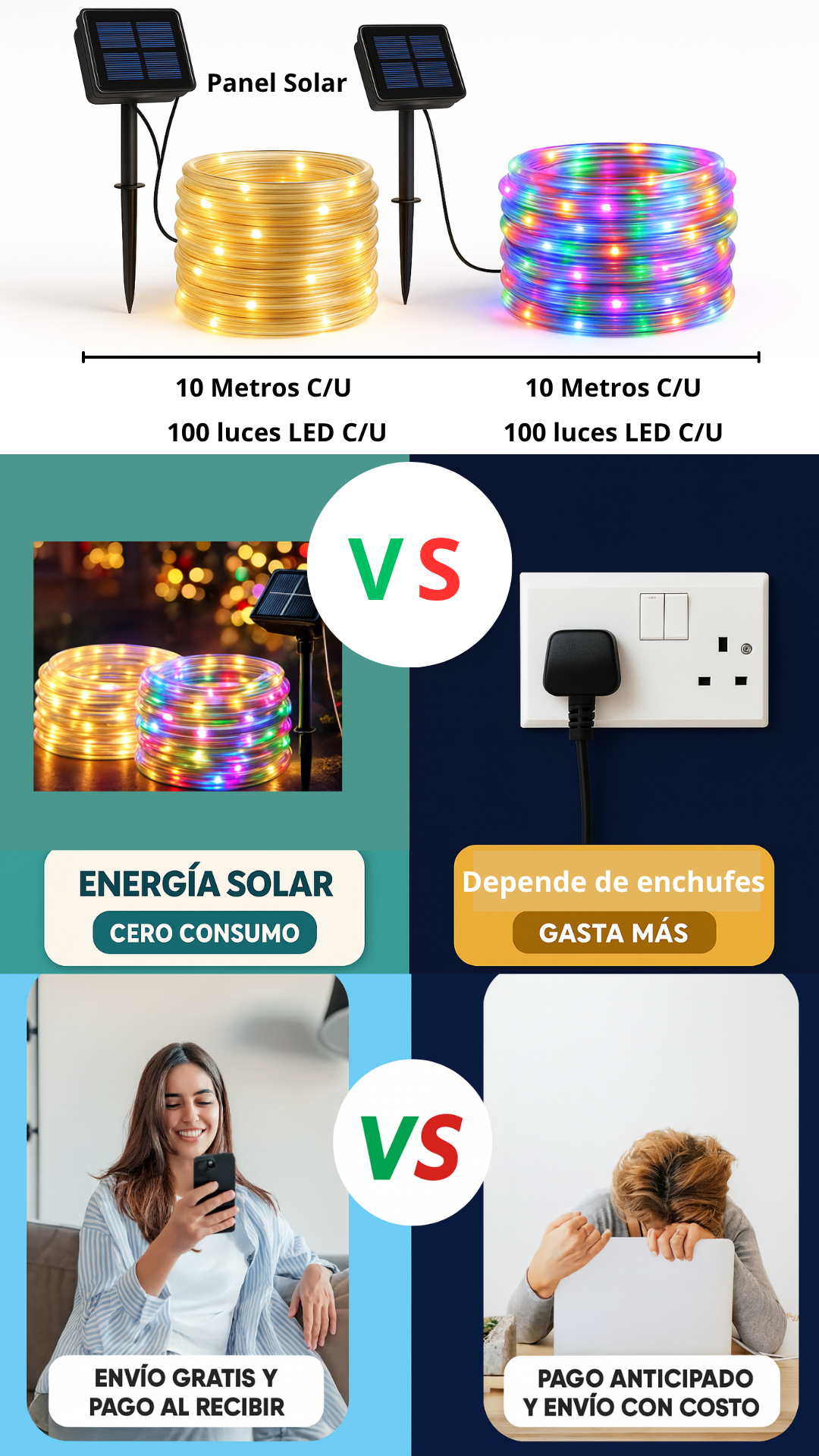 Pack de 2 mangueras solares de 10 mtrs LumiFlex: La magia navideña que tu hogar estaba esperando ✨